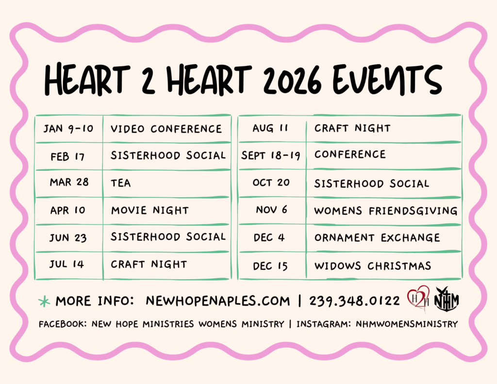 Heart 2 Heart Women’s Ministry offers a beautiful opportunity to deepen your relationship with God and connect with other women through shared experiences, heartfelt conversations, laughter, and even tears. We believe life is meant to be lived in relationship—first with God, then with each other.