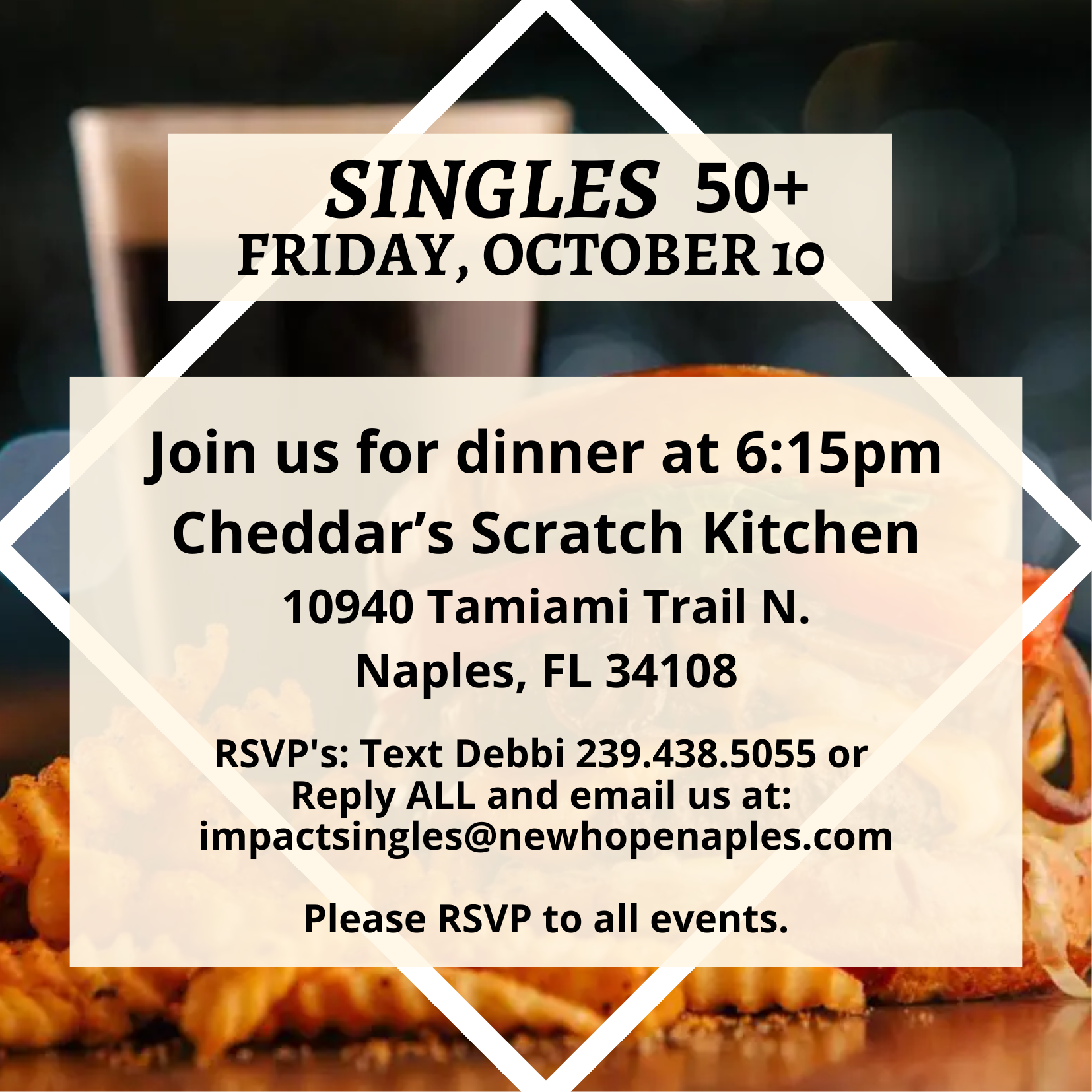 « All Events This event has passed. Event Navigation « H2H Women’s Bible Study – PM Session 2025 Hunting Banquet » Impact Singles 50+ Details Date: 10/10/2025 Time: 6:15 PM Share on: Add to calendar Google Calendar iCalendar Outlook 365 Outlook Live