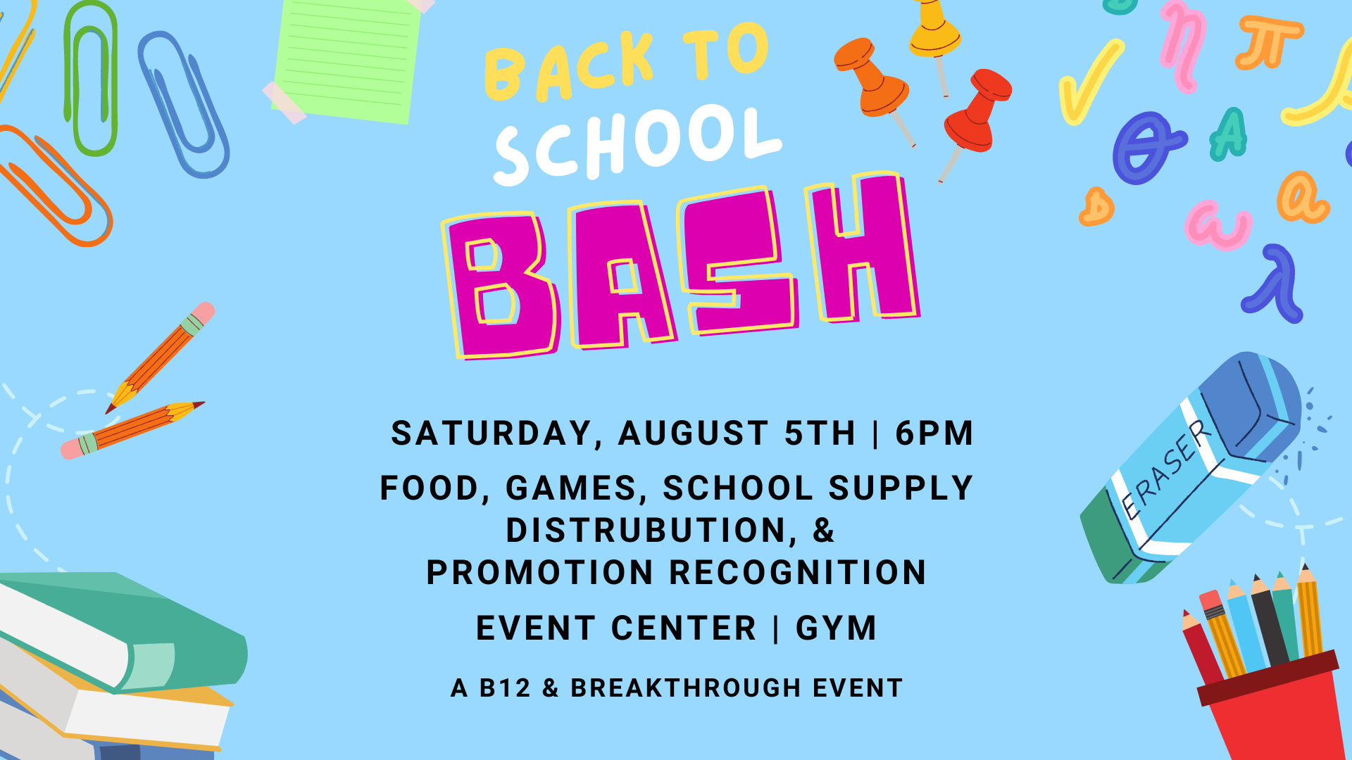 « All Events This event has passed. Event Navigation « Not the Boomers – 30s & 40s Group Guest Speaker: Bob Yandian » B12 Back to School Bash Details Date: 08/05/2023 Time: 6:00 PM Share on: Add to calendar Google Calendar iCalendar Outlook 365 Outlook Live
