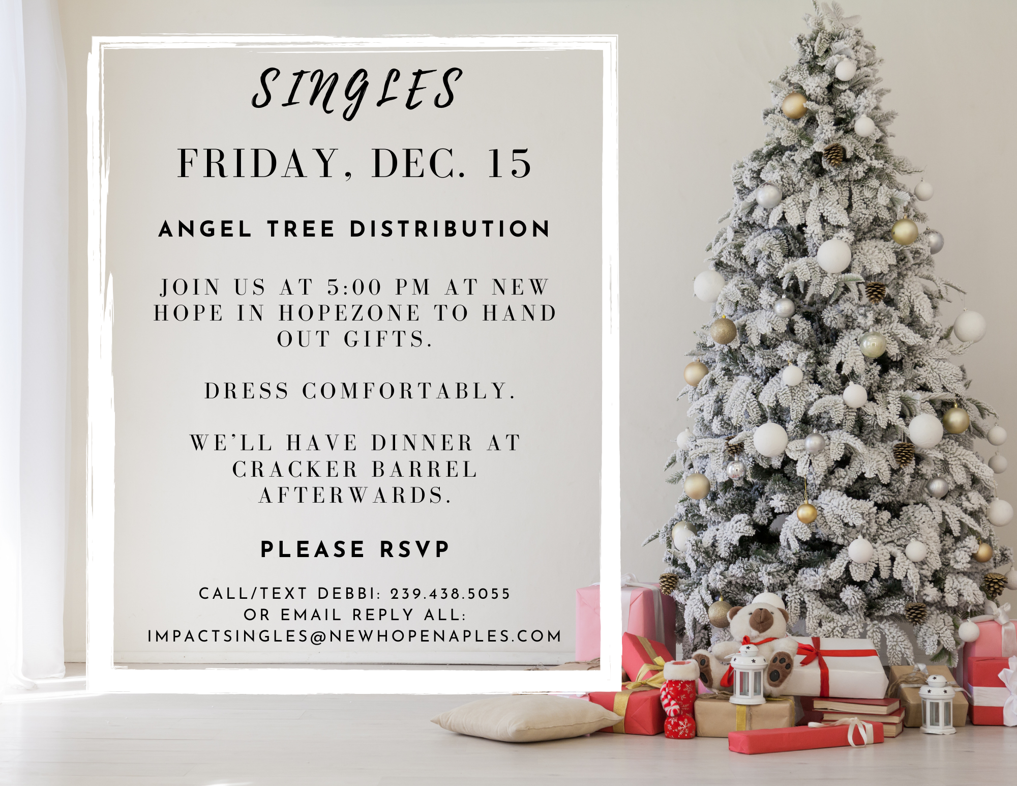 « All Events This event has passed. Event Navigation « Christmas Music Night Water Baptism » Impact Singles Details Date: 12/15/2023 Time: 5:00 PM - 6:30 PM Share on: Add to calendar Google Calendar iCalendar Outlook 365 Outlook Live