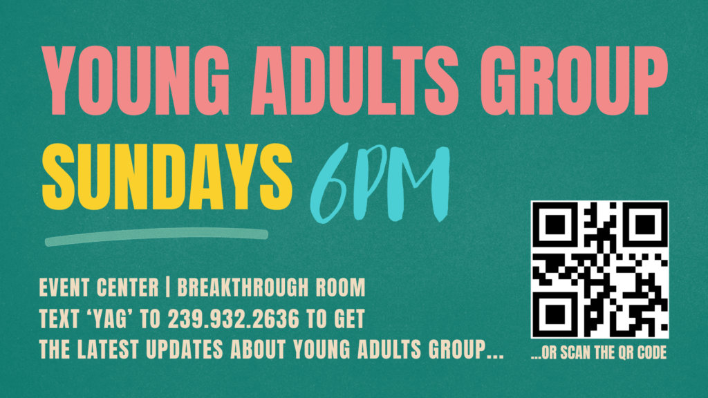 « All Events This event has passed. Event Navigation « Sunday Worship Service 6pm Celebrate Recovery » Young Adults Group Details Date: November 9 Time: 6:00 PM Share on: Add to calendar Google Calendar iCalendar Outlook 365 Outlook Live
